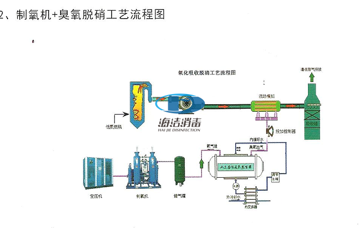 传统的烟气脱硫脱硝工艺存在设备投资高,占地面积大等缺点,因此开发工艺简单、可靠的脱硫脱硝工艺具有重要意义。臭氧脱硝是脱掉烟气中的NOX,烟气中的NOX的主要组成部分是NO,臭氧的高级氧化作用可以达到脱除效果,且烟气中的其他有害气体也可以脱除。臭氧作为一种强氧化剂,可以将NO氧化成可溶于水生成HNO2和HNO3的NO2/N2O3/N2O5等高价态氮氧化物。然后采用溶液进行吸收,***终讲NOX转化为N2达到脱除的目的,NOX的去除率高达90%以上,且不产生二次污染。